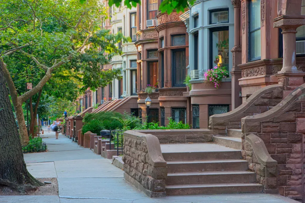 • Architecture: Classic brownstone row houses, some brick, occasional limestone