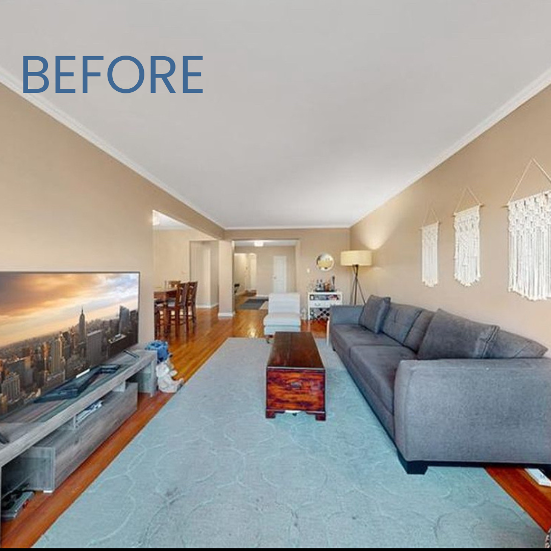 I specified exactly what needed to happen: floors professionally refinished to restore their warmth, walls painted in specific neutral tones that would make rooms feel larger and brighter, and staging that would showcase the co-op's generous room sizes and solid layout. I selected the paint colors. I approved the furniture plan. I knew exactly what this property needed to compete.